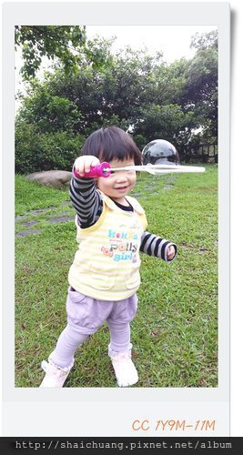 但CC幾乎都不肯坐著 只好帶到戶外玩耍吹泡泡