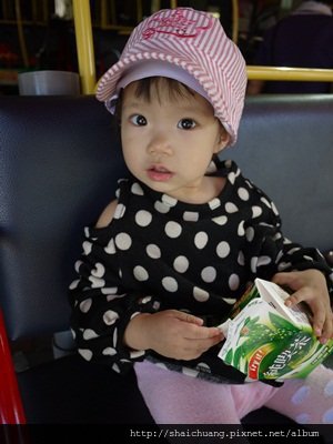 CC 乖乖的坐著 (可惜媽媽沒把帽子整理好)