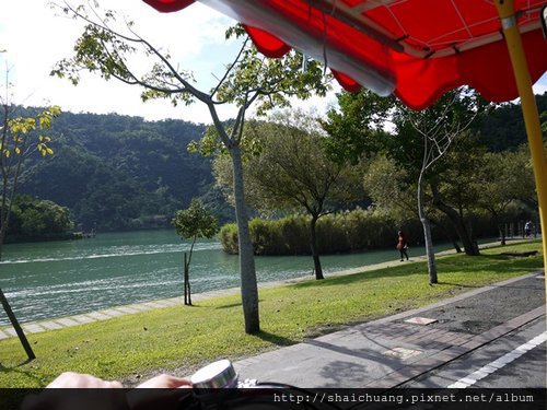 沒帶推車的我們真是覺得租車租對了 騎著車環湖兩圈兼運動 中途還可停下遛達