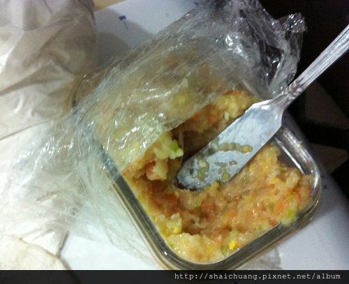 很意外的是沒有加油加水的餡料會自己勾在一起 不會散散的耶!
