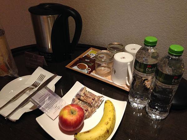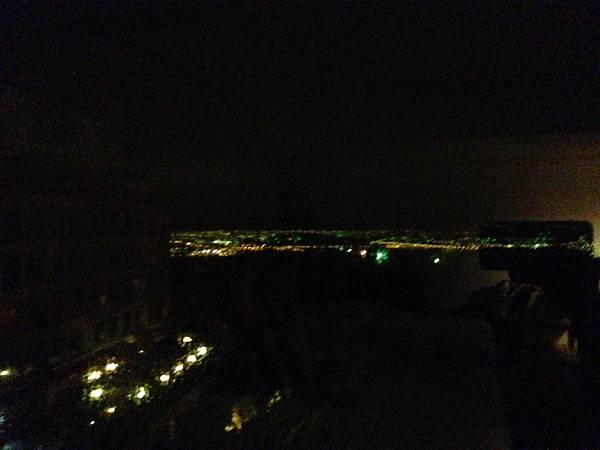 入夜房內的落地窗前有大片的夜景可看 可惜手機拍起來就是這樣 ><
