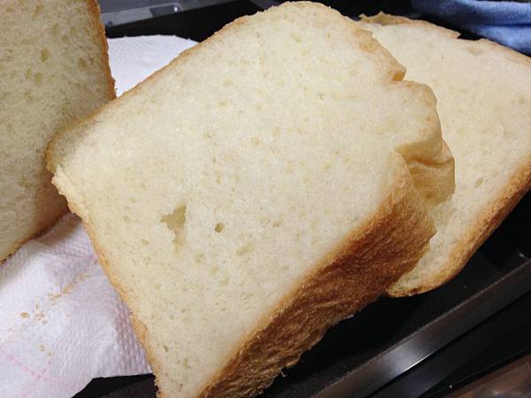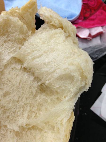 我的成品,自己就很愛吃的單純土司。酥酥脆脆的外皮,可以抽絲的土司,很讓人感動。