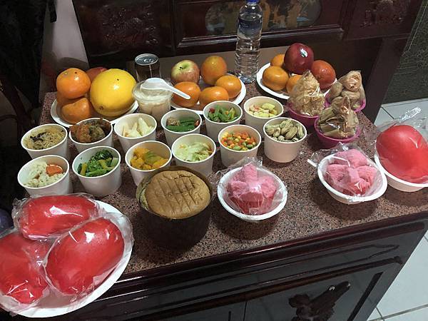 再斟酌爸爸愛吃的東西 準備了一桌的供/祭品