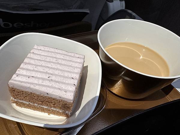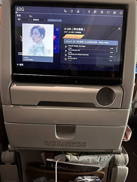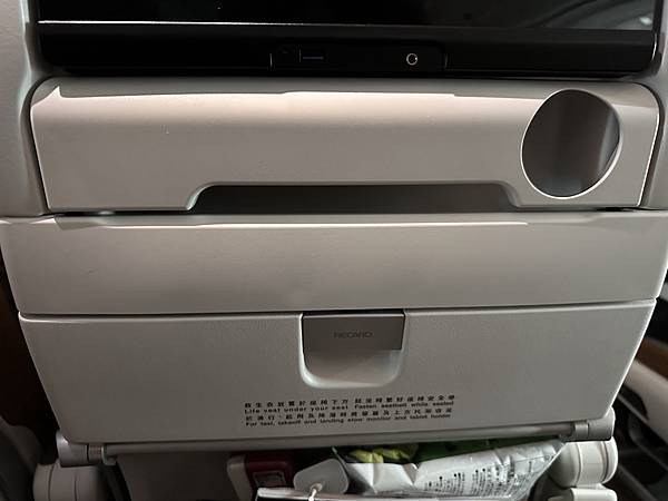 回程才坐到一般的座位,有插座、杯座設計都算方便,螢幕也很大。