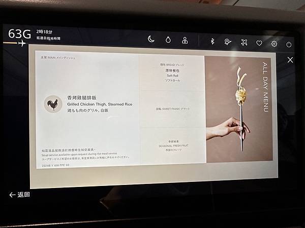 回程的星宇餐點一樣不用選,很新鮮的餐點,不輸去程胡同燒肉,雞肉很鮮嫩好像現做。